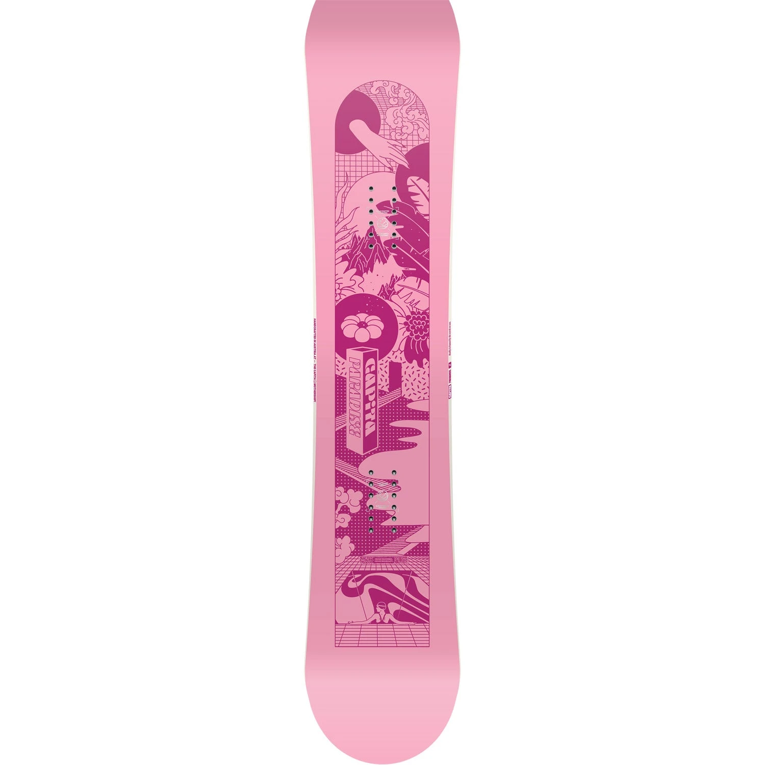 These perfectly balanced all-terrain freeride boards are stable and supportive—yet forgiving and easy to ride at the same time. Featuring camber underfoot for controlled turns and a rockered nose and tail that floats in powder, the Paradise rides above the choppy stuff that life on the mountain can throw at you. These highly sought-after decks feature a poppy, lightweight, and powerful