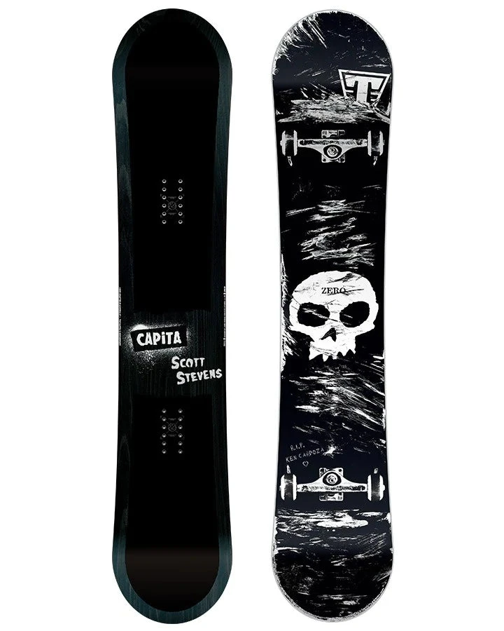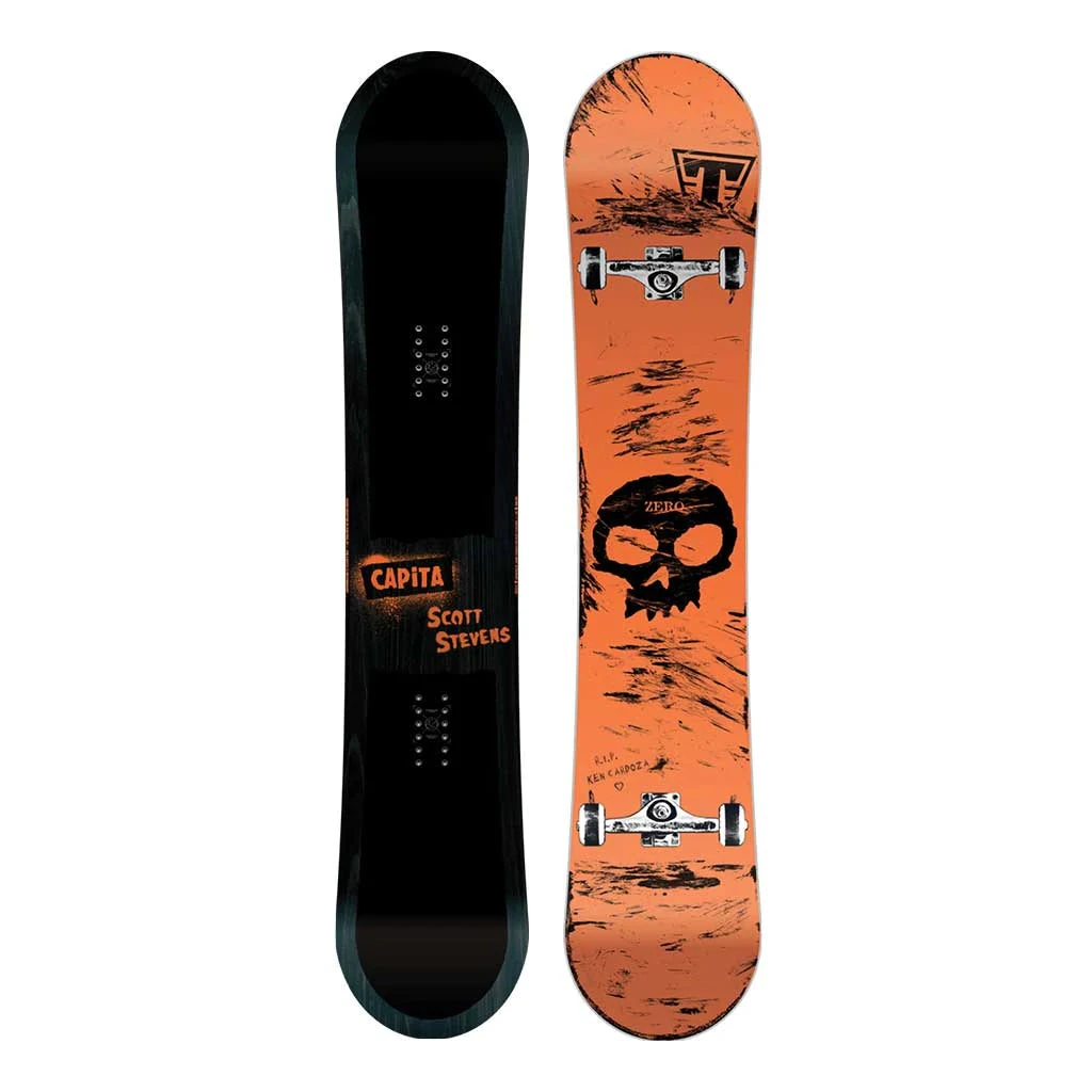 Often imitated but never duplicated, Scott Steven’s riding and personal style are without compare. As a master innovator and industry leader in new tricks, he has set himself apart in the snow-boarding game. This twin-tip park destroyer is Scott’s TENTH pro-model on CAPiTA. It is a nod to his love for skateboarding, a dream collab with ZERO Skateboards, and features graphics done by the legendary Jamie Thomas.