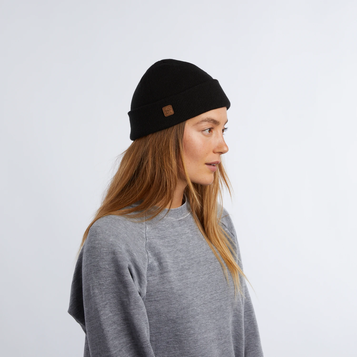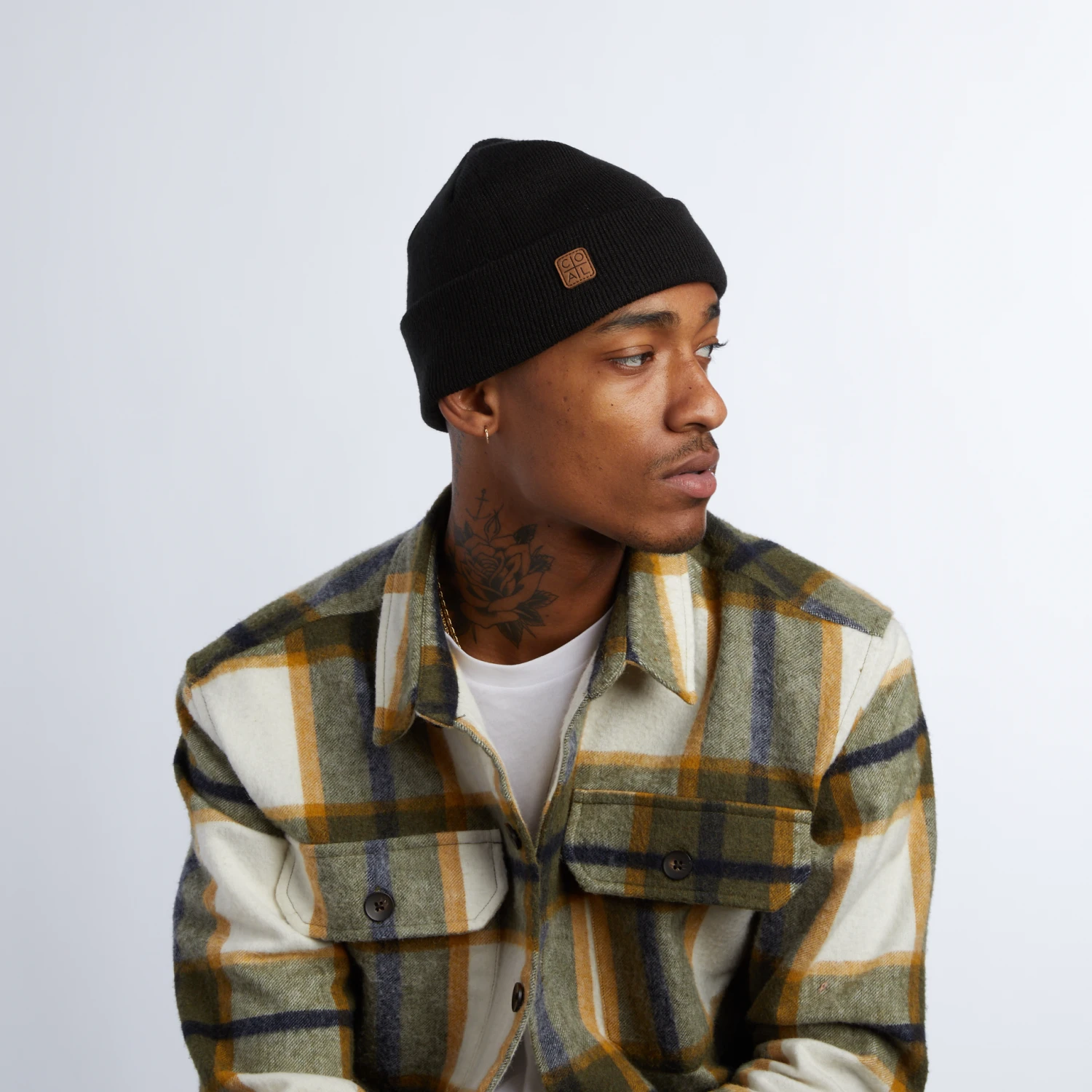 A traditional fine-knit beanie made versatile with two suede labels. Wear it classically cuffed for a low-profile fit or unrolled for more coverage on the coldest days.