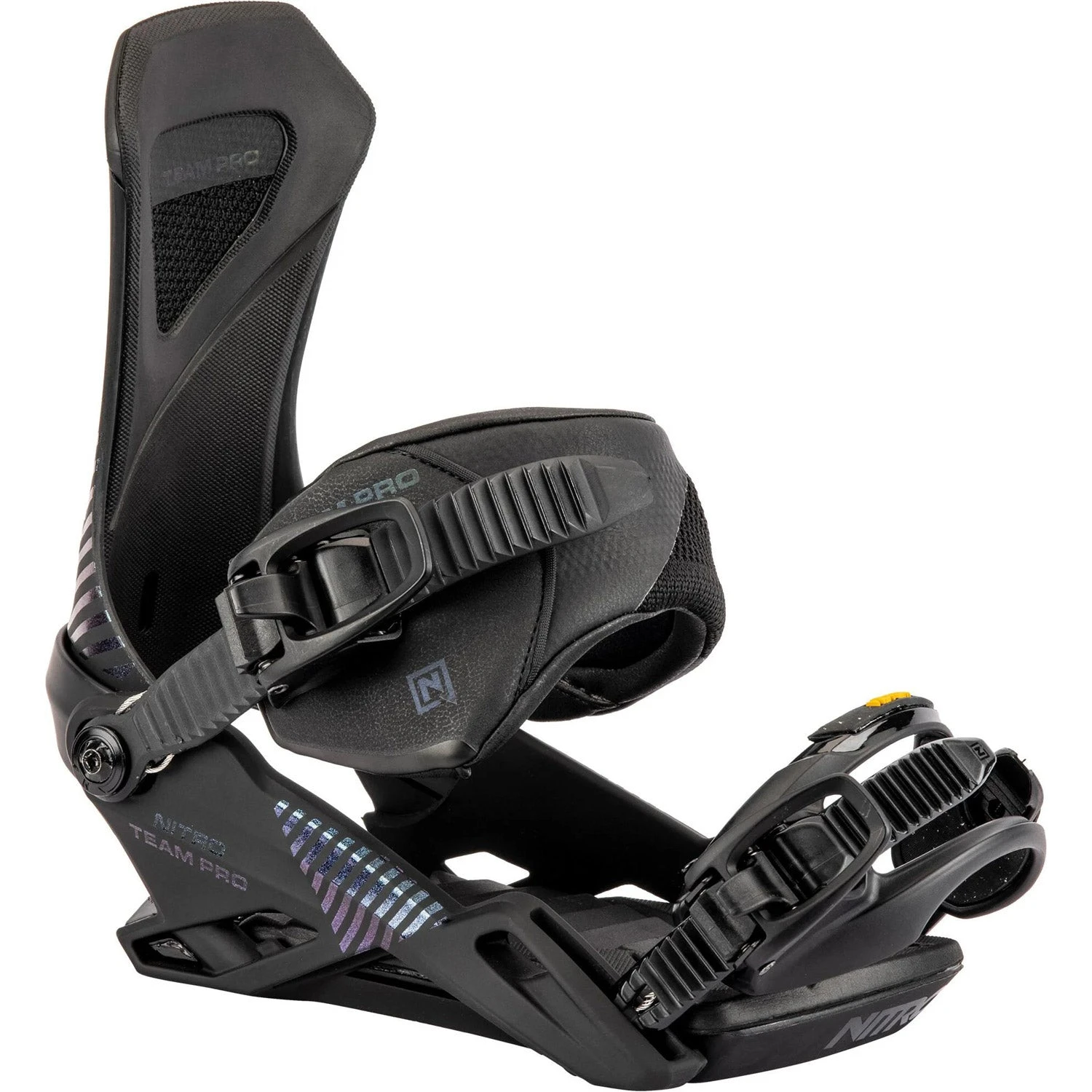 Nitro’s Team Pro snowboard binding has become the professional rider preferred choice over the last three seasons because of its ability to withstand massive impact, support for deep landings, and provide a precise response to allow riders like Torgier Bergrem and Marcus Kleveland to push snowboarding limits every day from X-Games runs, to spring park jumps. It handles the beating that the world’s best snowboarders can put it through and offer the fit and comfort to allow for day after day progression.The well-equipped Team Pro is our most professionally qualified freestyle binding because of its snug fit, responsive straps, and overall durability! Inspired by Nitro’s pro team’s desire to continue pushing the boundaries of what is possible, the Team Pro’s responsive Pro Highback is equipped with a heavy-duty forward lean adjuster. It has an upgraded Premium Lockdown Ankle Strap for increased precision and confidence during crucial moments before and after take off. The 3° Canted Footbed, Air Dampening, and Stealth Air Base Frame provide a comfortable fit and surface area to allow riders to send it all day long. As we all know, and especially riders like Marcus Kleveland and Torgeir Bergrem, the binding is the most crucial part of your overall setup; that is why Nitro has focused on creating the ultimate interface for over 30 years. You should not be thinking about your binding; that is why the Team Pro has been equipped with the new Übergrip Toe Strap with Vibram© EcoStepâ„¢ rubber and Cable reinforced Connectors and Ratchets for increased durability and unparalleled strength. If you are looking for a top-shelf pro-caliber binding to help you push your limits, then do like the Nitro Pro Team and strap into a pair of Team Pro bindings!