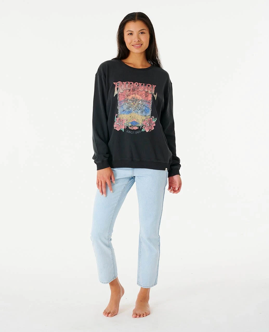 The Barrelled Relaxed Crew is a rad pullover sweater featuring epic front print with flowers, waves and Rip Curl lettering, with elasticated 1×1 ribbed hems and cuffs, and a relaxed fit with looser width and casual vibe.