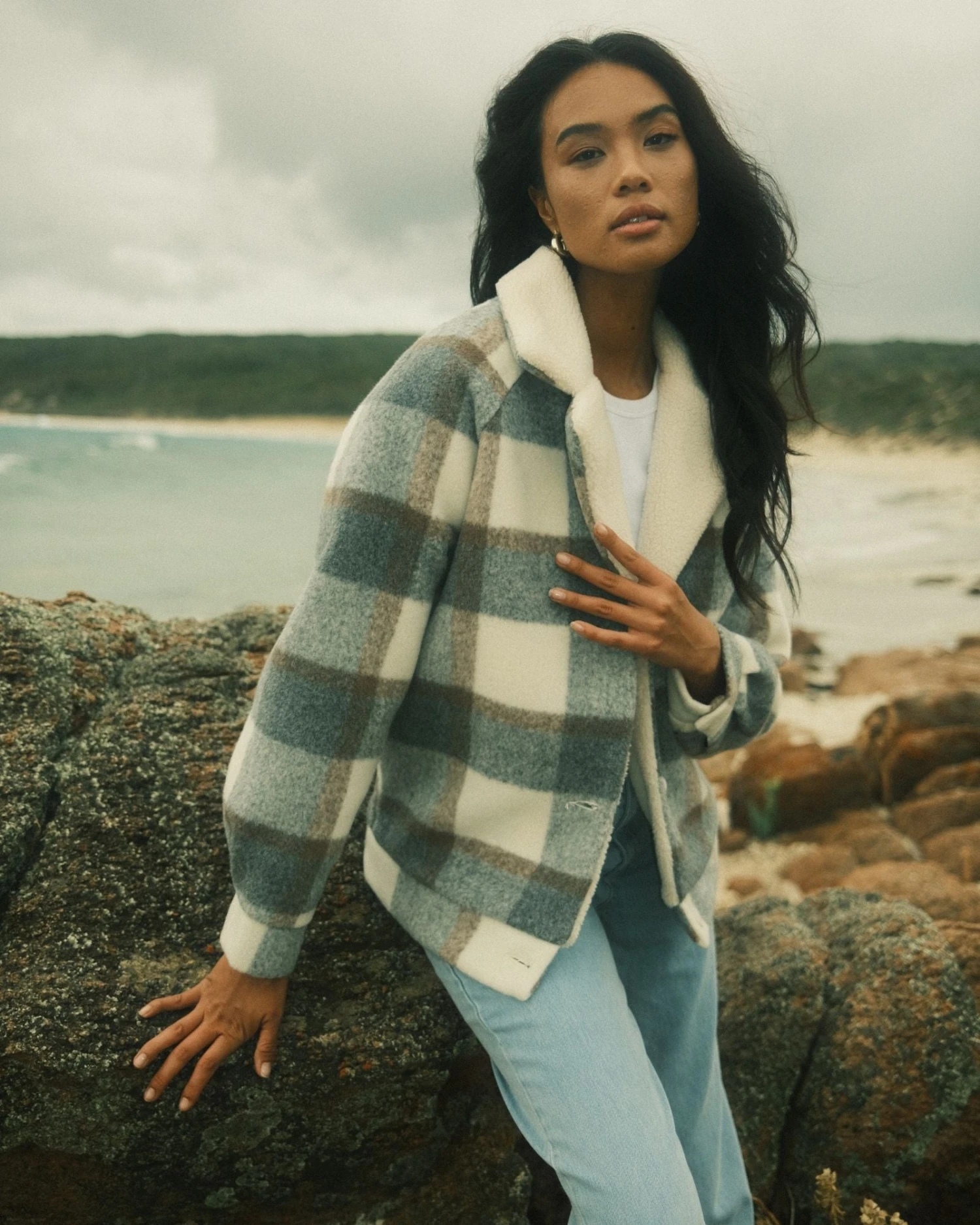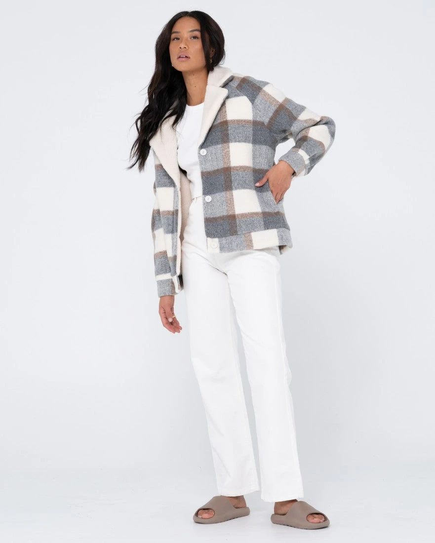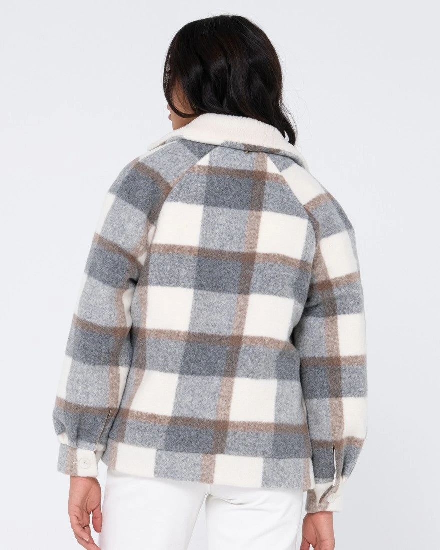 Relaxed Fit Sherpa Jacket With Seam Details Side Pockets And Sherpa Lining. Material: Plaid 100% Polyester