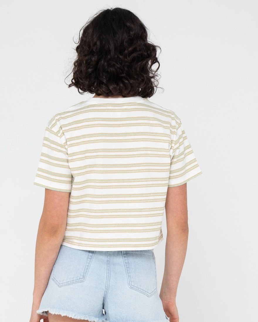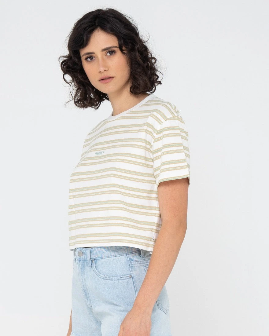 Custom Printed Cropped Relaxed Tee With Rusty Embroidery – Vintage Wash. Material: 100% Cotton Jersey – Mid Weight