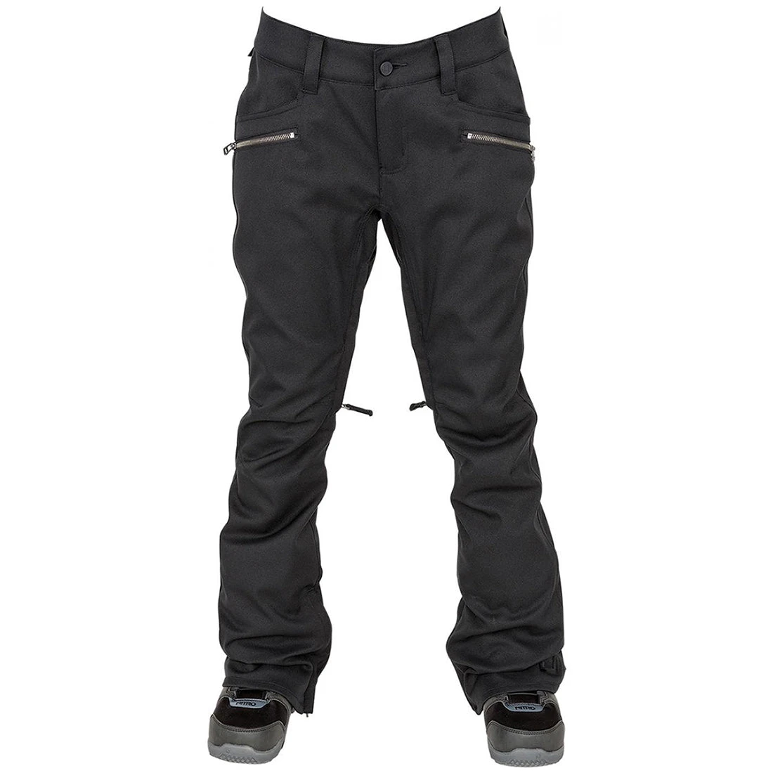 The L1 Scarlett pant is your slim fit go-to for any season. With a touch of insulation in the knees and seat where you are more likely to touch the snow, they are not too hot for spring days! The waist is low rise with a flattering slim fit through your thigh and knee with enough room for thermals in the deep winter. Inner thigh vents allow great temp regulation, and the leg gaiter with zippered hem allows easy access to tighten your boots if you need to.